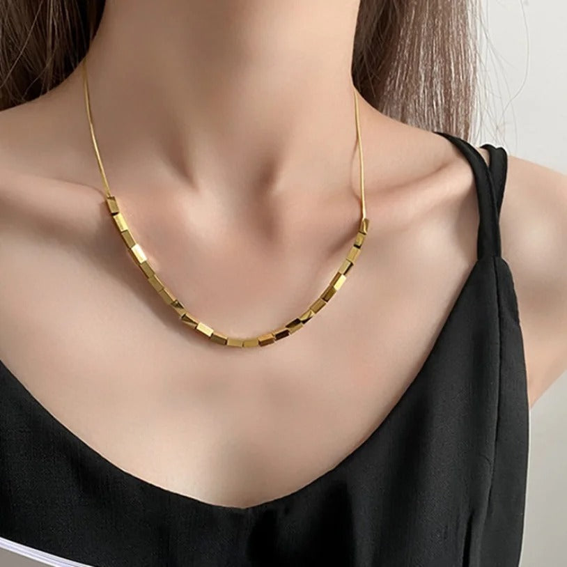Otkrivamo ti komad nakita koji će se uklopiti u svaku priliku – od svakodnevnog nošenja do svečanih trenutaka. Svaka kockasta perla pažljivo je oblikovana i postavljena kako bi se stvorio savršeni spoj minimalizma i sofisticiranosti.