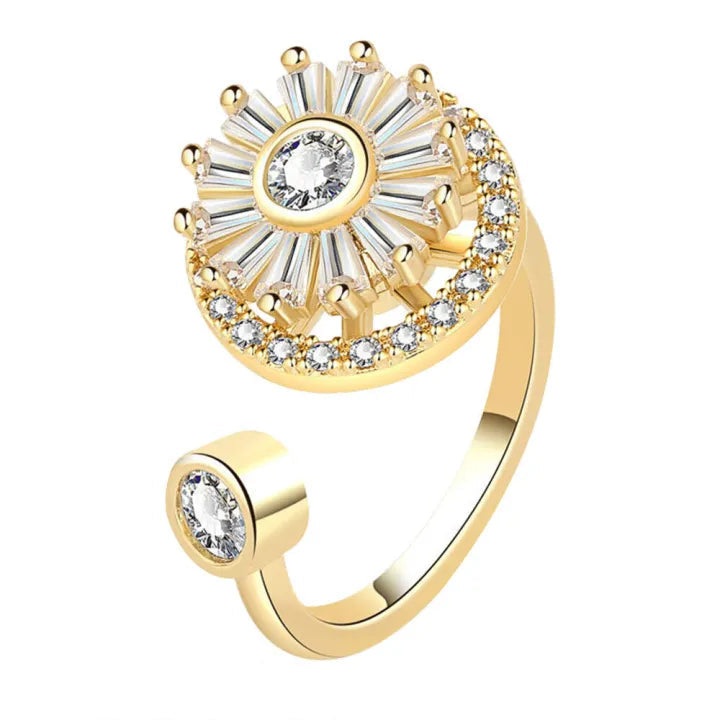 Posebnost ovog prstena je rotirajući gornji deo u obliku blistavog cveta koji se okreće glatko i tiho, bez ikakvog zvuka. Taj jednostavan pokret pomaže da se opustiš, smanjiš stres i umiriš misli.