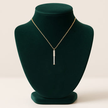 Ogrlica je izrađena od kvalitetne legure (bakar) ukrašene kubnim cirkonima, dok je privezak obložen 18k pozlatom. Dolazi sa podesivim lančićem koji omogućava savršeno pristajanje.