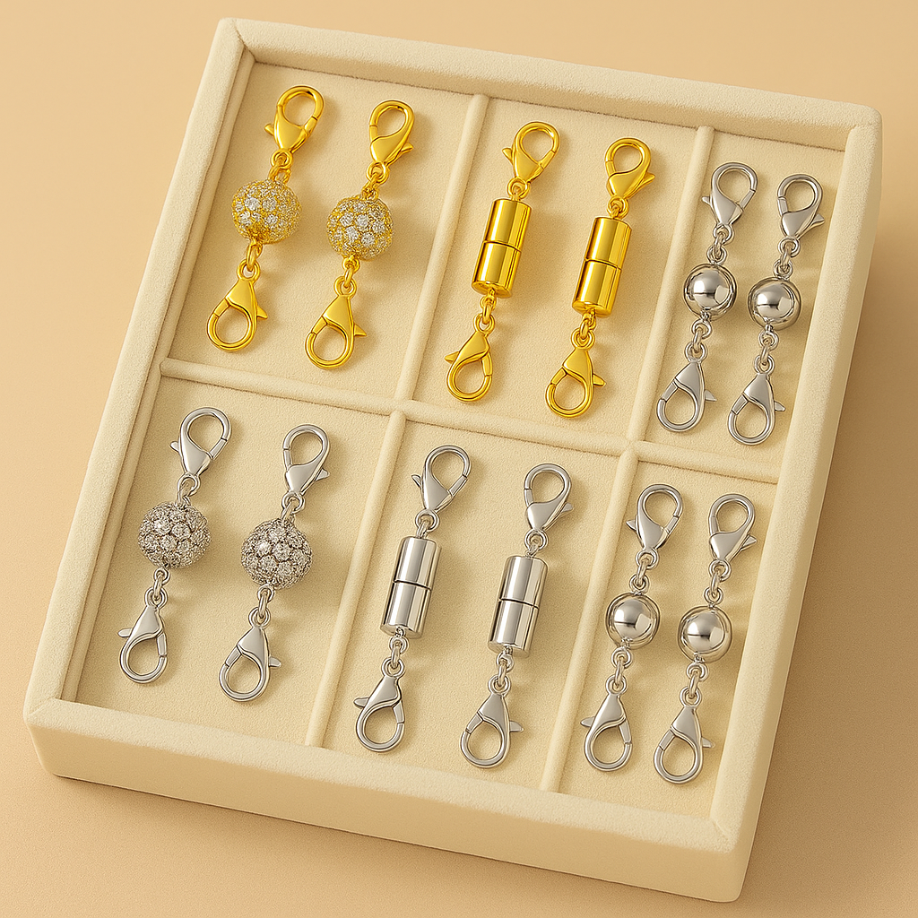 Magnetne kopče su diskretan, ali izuzetno praktičan dodatak koji omogućava lako i sigurno zakopčavanje ogrlica i narukvica. Idealne su za one koji žele udobnost bez odricanja od stila – u zlatnoj ili srebrnoj varijanti, sa ili bez cirkona, savršeno se uklapaju uz svaki komad nakita.